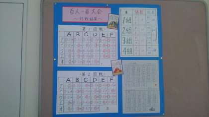 昨日の百人一首大会の結果が2年生の廊下に掲示されていました。
