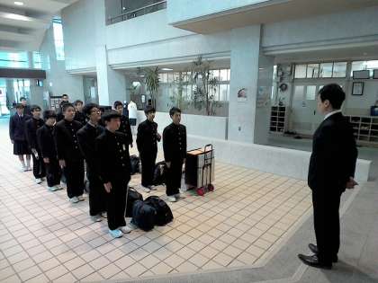 出発前に、玄関ホールで出発式が行われました。