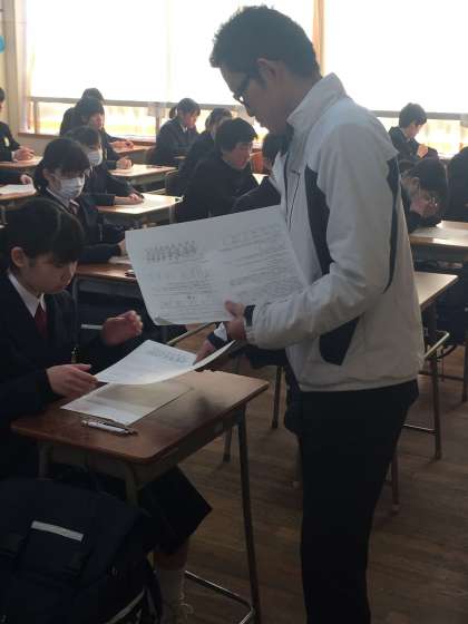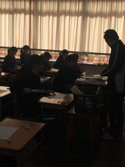 保健体育のテストが配布されています。数多くのテストをこなしてきた3年生、最後のテストをどのような心境で過ごしているでしょうか。これで最後!という生徒もいれば、まもなく控えている入試を意識している生徒もいるかもしれません。出願の準備で特に忙しかった3年生ですが、ベストパフォーマンスを期待しています。