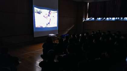 DVDを見る前に、松村先生からお話がありました。世界の様子、子供たちがどんな思いを持って学校に行っているか、など、考えてもらえるきっかけにしてほしいと思います。