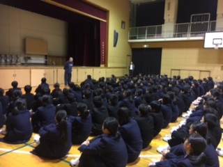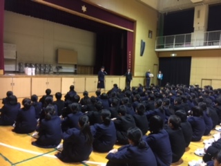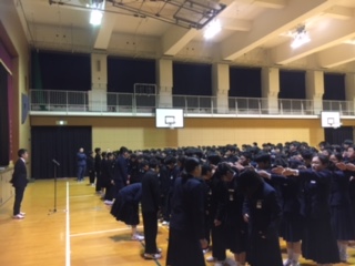 閉会式の様子です。クラスの優勝、班での優勝、個人賞の結果発表は、来週の学年集会で行います。お楽しみに!最後に山田先生からご好評と、文化委員から終わりの言葉があり、百人一首カルタ取り大会を終えました。自分の力は発揮できたでしょうか。全員が1枚でも多く、全力でカルタを取りにいっていて、非常に良かったと思います。あさっては実力テストです。気持ちを切り替えて、テストも全力で頑張りましょう!