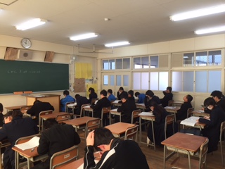 1月27日9:00より、本校を準会場として日本漢字能力検定試験に臨みました。受検する生徒は2週間前から勉強を続け、毎朝担当の先生のチェックを受けました。その成果を充分に発揮できたのではないでしょうか。合否は約30日後に分かります。結果を待っていてください。