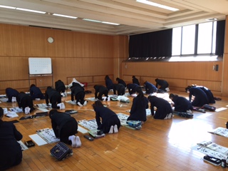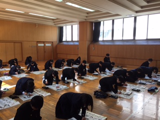 この時間はいつもは教室で書写の授業をしているのですが、本日は多目的室にて行なっています。