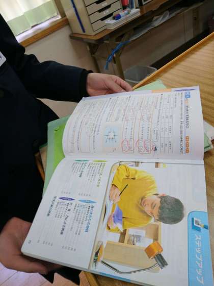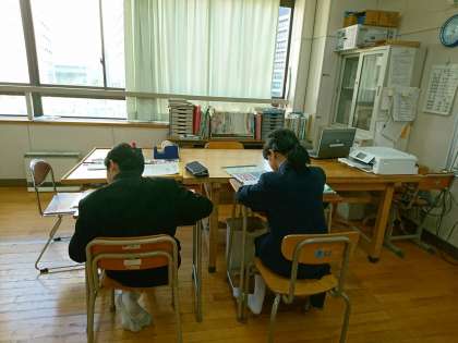 終学活後、わかくさ学級で提出物に取り組んでいます。分からないところを先生に質問しながら、取り組んでいます。がんばれ!!