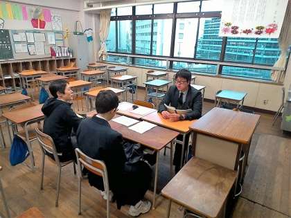3年4組の教室では、受検校の決定をはじめ出願や受検当日についての確認も行われていました。
