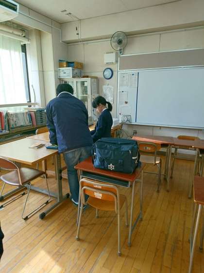 1年、2年は学年末テスト2日目です。提出物の確認や、テストに出そうなところを最終確認しています。