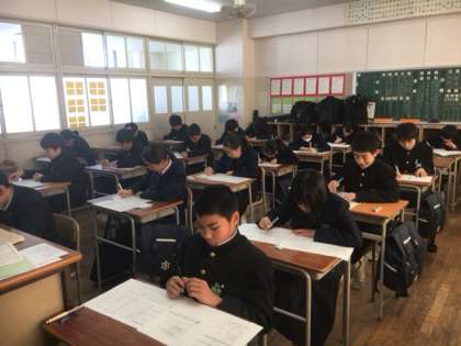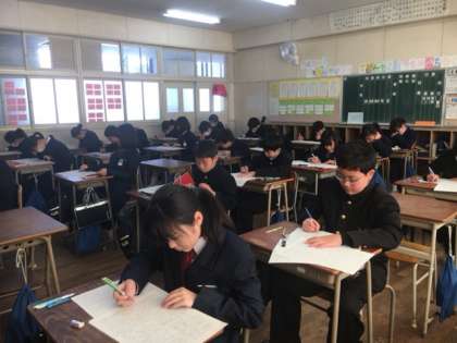 本日は学年末テスト最終日です。英語、国語、音楽のテストが行われています。最後まで集中を切らさずに挑みましょう!