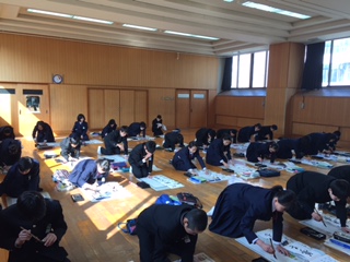 少し時期は遅いですが、書き初め用紙に毛筆で書写しています。