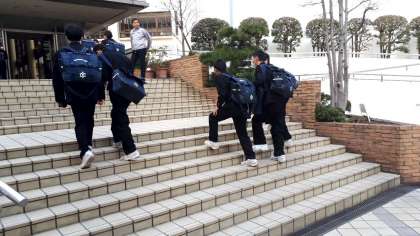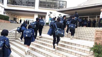東中生が登校してきました!2月も今日で終わりです。3年生は本日、公立特別選抜の合格発表です。