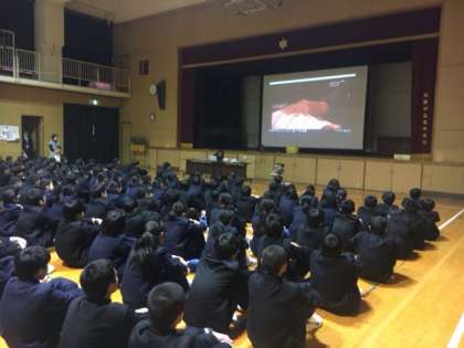 はじめに「いのちの誕生について」DVDを見ています。みなさん真剣に鑑賞しています。