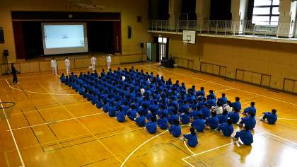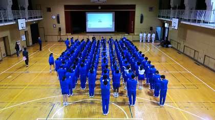 1・2限は1年生の5クラス、3・4限は2年生の4クラスが体育館に於いてご指導いただきます。