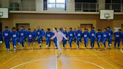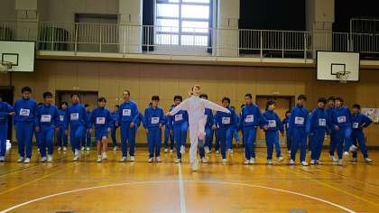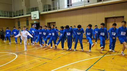 クラスごとに『決めポーズ』の練習、4組の様子です。