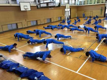 本日の5時間目は体育館で3年生1組、2組の中学校生活、最期の体育の授業が行われています。3年間を通してランニング、東中体操、柔軟補強運動、ダッシュを一貫して行い、本当に心身ともに立派に成長してくれました。今日は最後の東中体操です。今日はいつもより、ゆっくりしたリズムで最後を噛みしめるように東中体操が行われています。