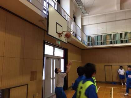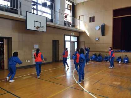 最後の授業内容はバスケットボールです。男女ともに、体育委員を中心に生徒たちの主体的な活動により授業が展開されました。