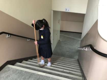 本日、5限目に美化活動を行いました。3年間お世話になった校舎に感謝の気持ちを込めて、清掃活動を行いました。