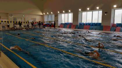 今日は高校の温水プールをお借りして、7校で合同練習です。みんな頑張って泳いでいます。