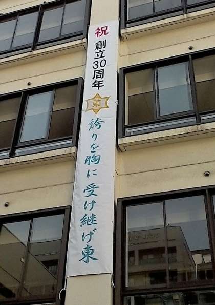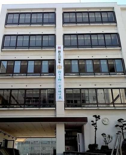 明日の卒業式を前に、ついに30周年を祝う懸垂幕が完成しました。
