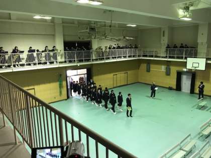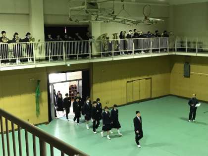 2年生と吹奏楽部が参加して、卒業式の予行が始まりました。