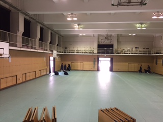 卒業式の予行後、2年生の数名がこの後の会場設営のための下準備をしています。