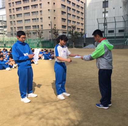 応援の部では、3組男子と4組女子が表彰されました。どのクラスも男女互いに応援しあっていたのが良かったです。