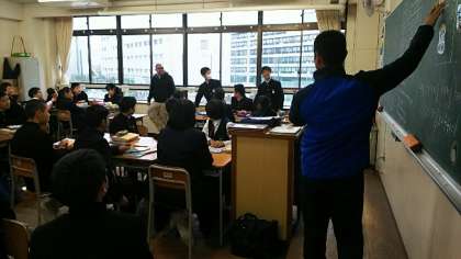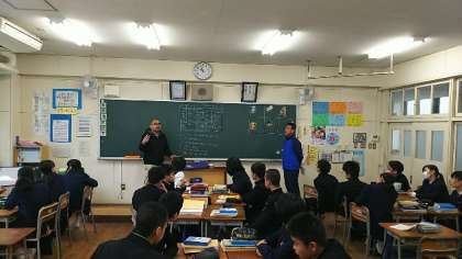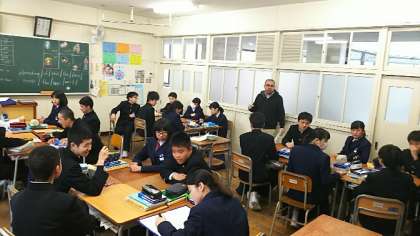 今日はどのクラスもアーネスト先生との最後の授業です。今までに習ったことをしっかりと思い出して、班で協力して楽しく学習しましょう!
