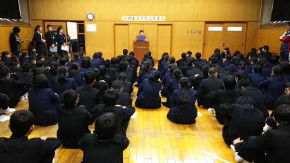 いよいよ代表者による作文発表です。緊張の中、堂々とした姿勢で大きな声ではっきりと読み上げています。