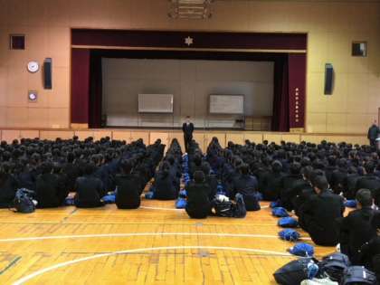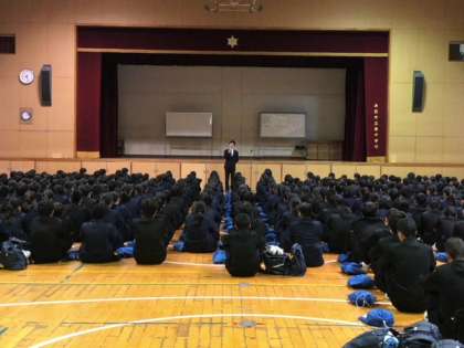 平成29年度、最後の全校集会となりました。もうこの場には3年生はいません。とても寂しく感じますね。3月14日、第30期生は、厳粛でかつ清新で、感動的な卒業証書授与式を最後の大行事として見事に成し遂げました。2年生の皆さんはその姿を目に焼きつけたことでしょう!1年生は参列できませんでしたが、2年生の先輩や先生方からその様子をしっかり聞き、受け継ぐ身として心構えをしてほしいです。さて、いよいよ今年度もあと4日、平成29年度が修了します。それは、次の始まりの合図です。第31期生の2年生は、最高学年です。第32期生は、いよいよ後輩たちを迎えます。その自覚と責任を今感じていますか。何か事を進める時、起こす時に次からとか明日からという考えでは、何も進みません。起こりません。後回しにしている間は、何も変わらないのです。事を進める時、起こす時は、今日から、今から、直ちにという気持ちで自分を変えていかなくではいけません。今日の全校集会はそんな気持ちで臨めたでしょうか!?もう新学年へのスタートは切られています。しっかりと理解し、考え、行動しましょう。