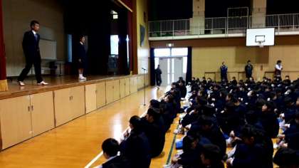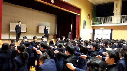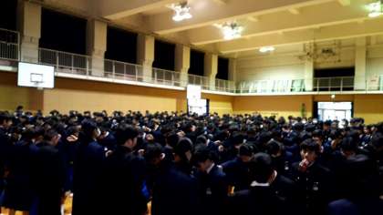 3年生が卒業し、1、2年生だけの全校集会がまもなく始まります。今年度最後の全校集会です!