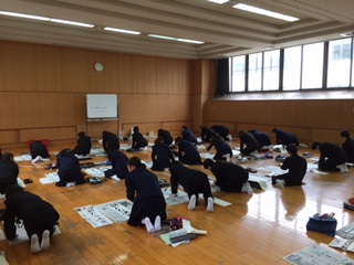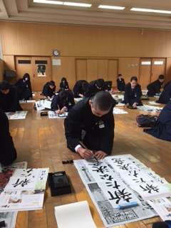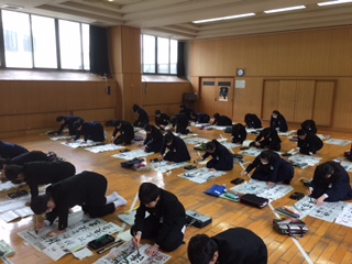 多目的室で行う書写の授業の2回目です。この時間は清書となっています。