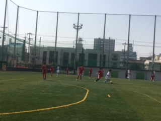 浪速中学校、上町中学校と練習試合を行なっています。暖かく心地よい風も吹き、サッカー日和です!人工芝の上を走ってボールを追いかけています。受けに入らず攻めて攻めて、ゴールを狙おう!!!