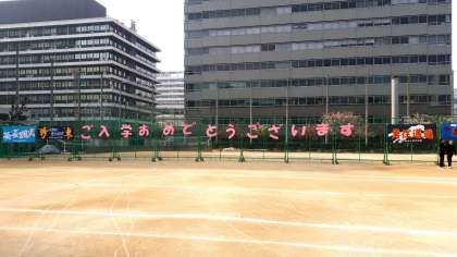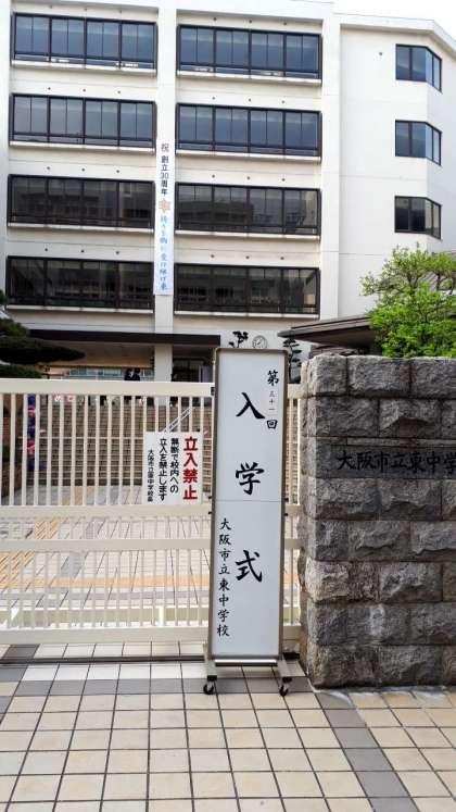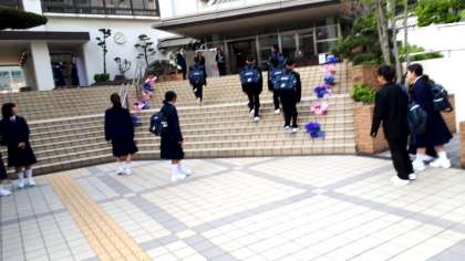 第31回東中学校入学式がまもなく始まります。新入生も登校してきました。