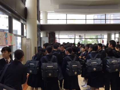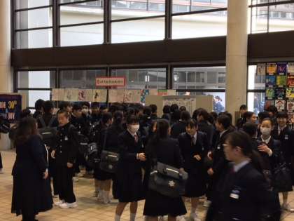 玄関ホールでは、3年生のクラス発表がありました。