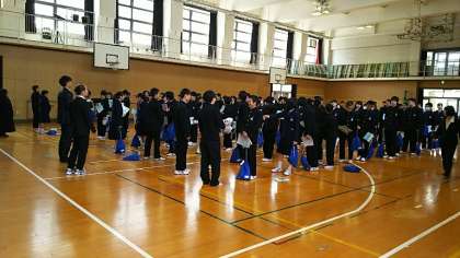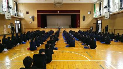 3年生になって初めての学年集会です。書類の並べかえのあと、小野先生からお話しがありました。