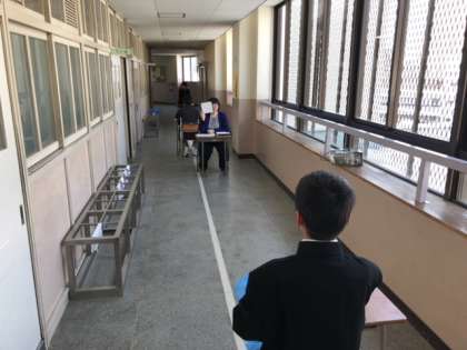3時間目は各クラスの廊下で視力検査を行っています。