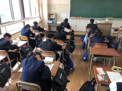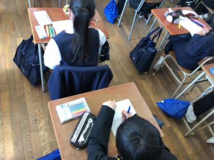 待っている間は教室で自己紹介カードを記入しています!