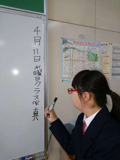 わかくさ学級のホワイトボードには、生徒たちが今日の日付と曜日を書いてくれています。