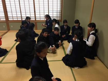初めに礼の練習をして、次にグループに分かれて袱紗さばきの練習をしました。