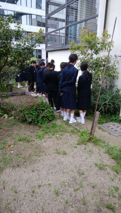 活動場所の説明をしています。活動場所の広さに対して、人数が多いので、説明も一苦労です。
