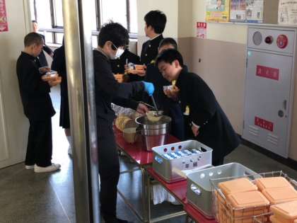学校給食の配膳も順番を守り、スムーズに行えています!