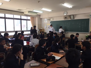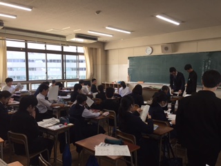 この時間は先日までの続きで、班長の決定と自己紹介プリント等の作成をしています。