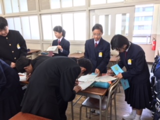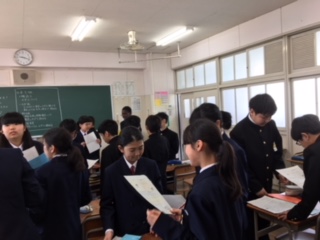 1年1限、各学級では、「自己紹介カード」を使って、仲間づくりに取り組んでいます。これから1年ともに過ごす仲間とお互いに良さを認め合えるよう、よりよい関係を築いていきましょう!