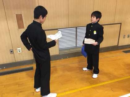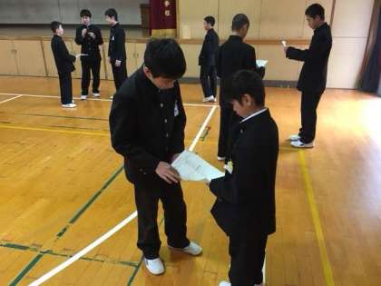 本日の昼休みより学級代表と体育委員が、体育館で号令の練習を開始しました。