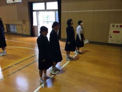 本日もお昼休みに集団行動の号令練習を行っています。今日は学級代表や体育委員だけではなく、2年生の学年集会リハーサルや美化委員会の発表練習なども同時に行われています。体育委員は、今日から3年生も加わりました。昼休みの体育館が日に日に熱くなってきています!今日も「誇りを胸に受け継げ東」が実践されています。