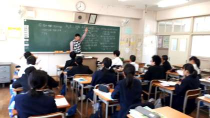2年生の数学の授業です。習熟度別少人数授業です。積極的に手が挙がっています!