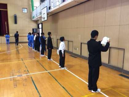 本日の昼休みも体育委員と学級代表が体育館で号令の練習に励んでいます。この練習は先生たちが指示をして実施しているわけではありません。参加も自由です。日に日にメンバーも増え活気に満ちあふれています。今日も誇りを胸に受け継げ東が体育館で実践されています!頑張れ東中生!
