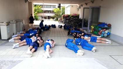 部活動編成後、早速活動です!運動場やピロティは所狭しと、東中生の活気が溢れています!