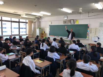 1年生の英語の授業では、中学生になって初めてのアーネスト先生との授業が始まりました。
