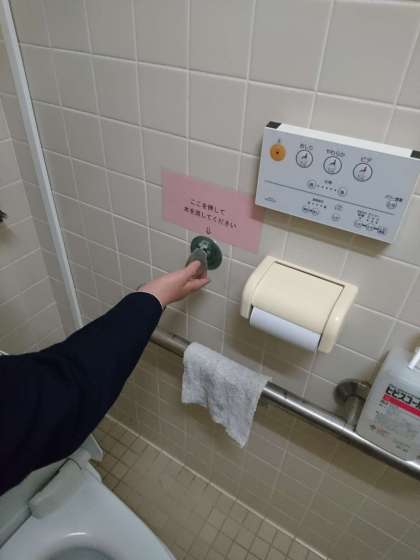 鍵のかけかたや、水の流し方が他の個室とは違いますね。