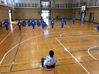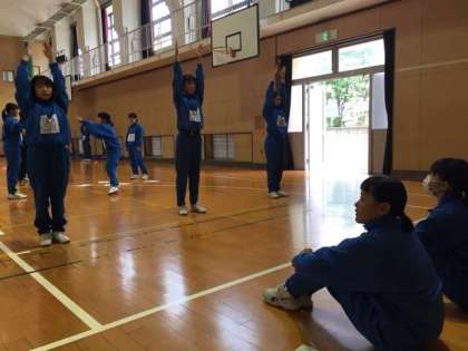 4時間目に2年生1.2組は東中体操2回目のテストに取り組んでいます。今回のテストは3回に分けて実施しています。各班ごとに練習とテストに取り組み、1回目のテストで合格した人が、各班のアドバイザーとなり練習を進めています。互いに教え合う姿が体育館中に見られます。2回目のテストで多くの合格者が出ることを期待しています!頑張れ2年生!