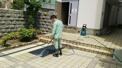 生徒の下校時刻、管理作業員さんは、玄関ホールのシートをきれいにしてくださっています。